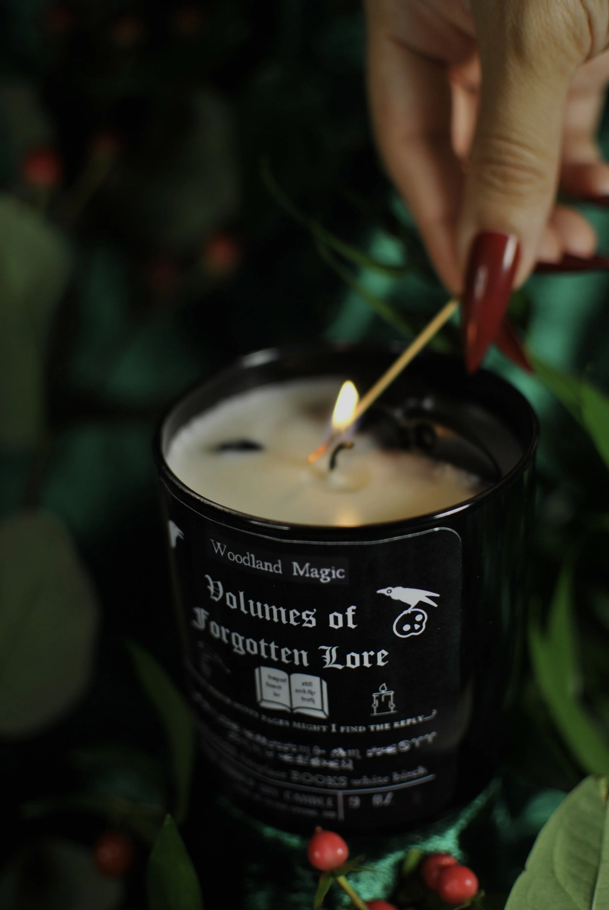 The first candle I experienced from Woodland Magic is called Forest Floor, which had me in a trance for months. After mourning its last hour of burning, I graduated to the mossiest offering, the famous Bog Witch candle. Finally, at the start of this winter, I knew it was time to get cozy with the scent I was dying to experience: Volumes of Forgotten Lore.